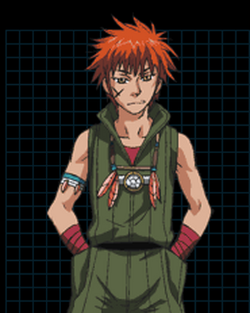 Apollo has red hair and a scar on his face.